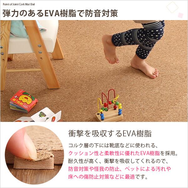 大粒の天然コルクを使用したジョイントコルクマット64枚タイプ衝撃を吸収するEVA樹脂だから防音効果や保温効果があります!