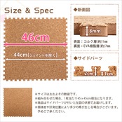 サイドパーツ付き!ジョイントコルクマット 64枚セット(大判45cm)安心の低ホルムアルデヒド、防音、保温【Etle-エーテル-】