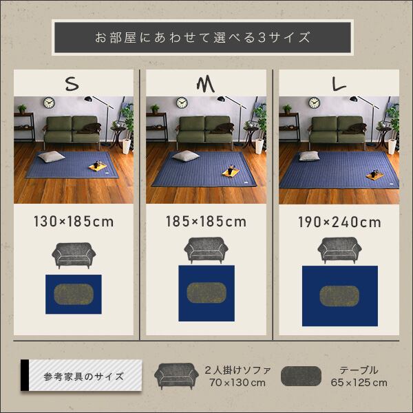 キルティングデニム調ラグLサイズ(190x240cm)オールシーズン、滑り止め付き、手洗い対応【Derid-デリッド-】