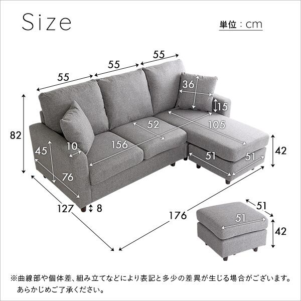北欧インテリア 3人掛けコンパクトカウチソファ【lugna-ルグナ-】