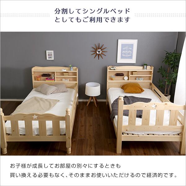 上段・下段が分割できる構造でシングルベッド2つにも変更可能!