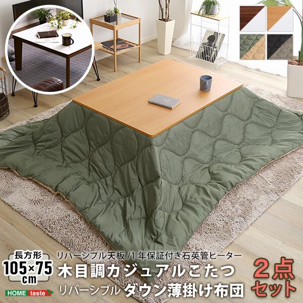 リバーシブル天板の木目調カジュアルこたつ布団セット(ダウン) 長方形(105×75cm幅)SH-01