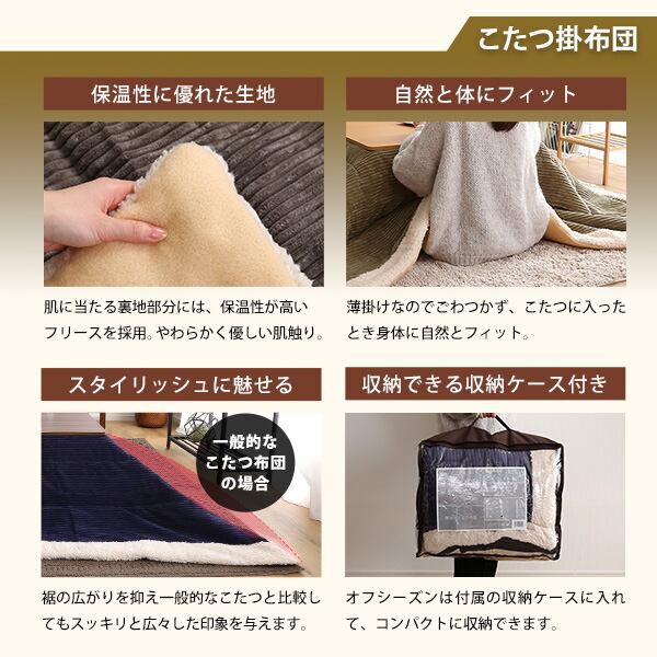 リバーシブル天板の木目調カジュアルこたつ布団セット(コーデュロイ) 正方形(70×70cm幅)SH-01
