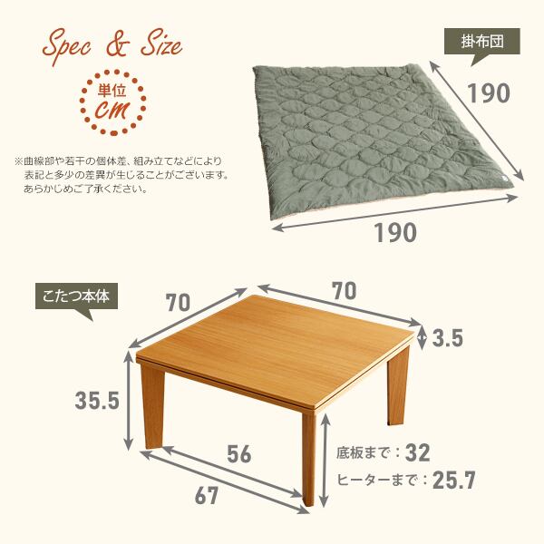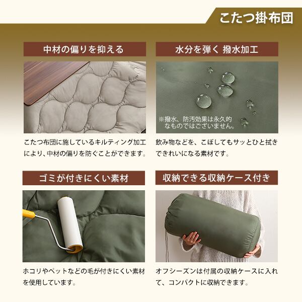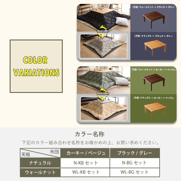 リバーシブル天板の木目調カジュアルこたつ布団セット(ダウン) 正方形(70×70cm幅)SH-01