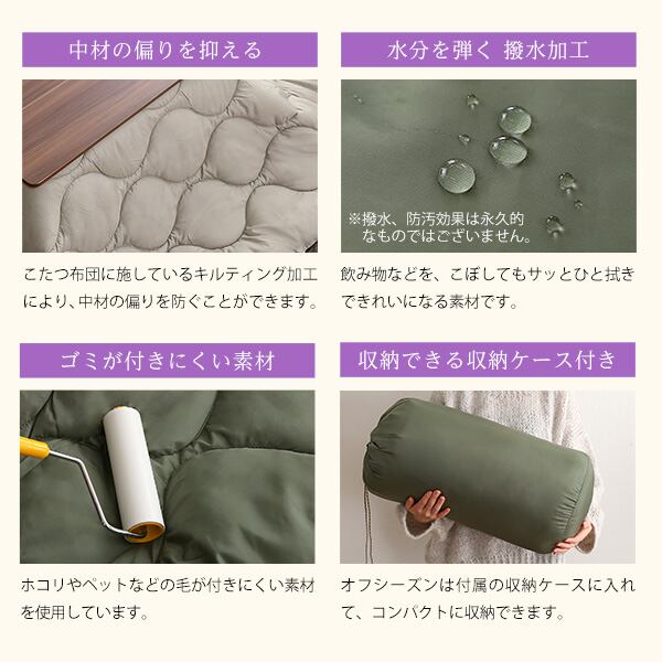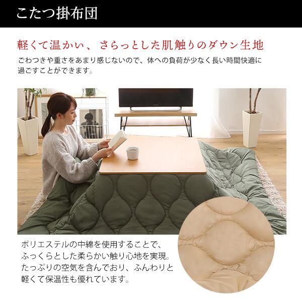 リバーシブル天板のシンプルなホワイトこたつ布団セット(ダウン) 正方形(70×70cm幅)SH-01