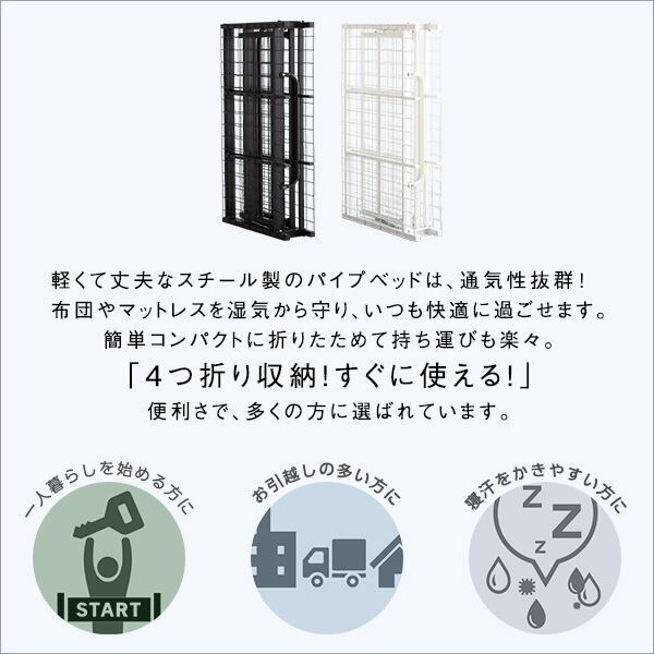 4つ折り 折りたたみパイプベッド【Vierte-フィルテ-】