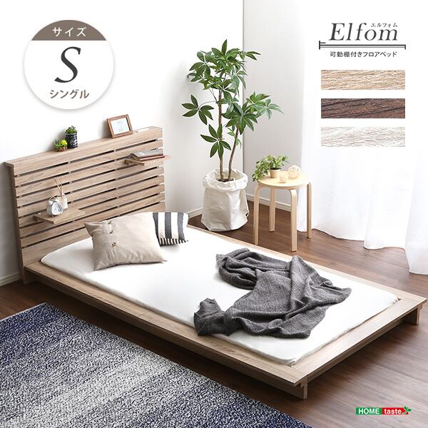 可動棚付きフロアベッド(シングル)ベッドフレーム、ロースタイル、スリムヘッドボード|Elfom エルフォム