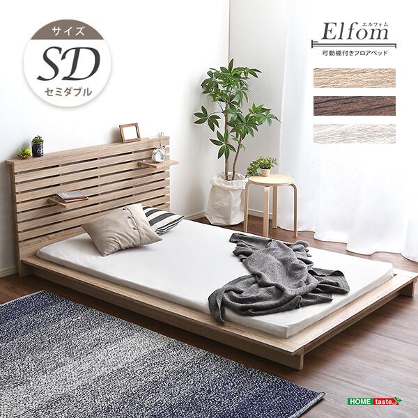 可動棚付きフロアベッド(セミダブル)ベッドフレーム、ロースタイル、スリムヘッドボード|Elfom エルフォム