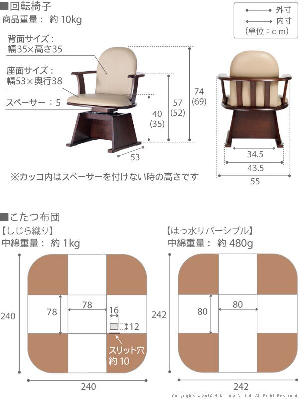 【セット構成】本体x1台/こたつ布団x1枚/肘付回転椅子x2脚