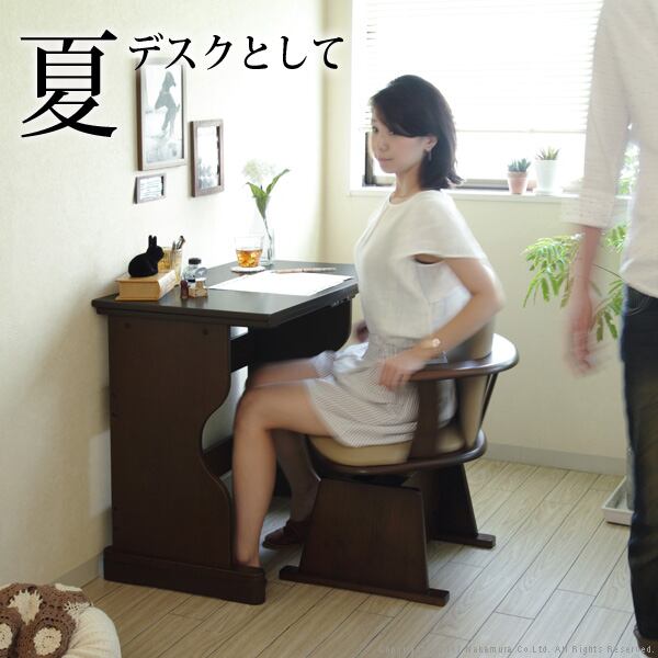 こたつ テーブル 長方形 デスク型ハイタイプこたつ-フォート75x50cm +専用省スペース布団+肘付き回転椅子1脚 3点セット ファン付き テレワーク リモート 在宅