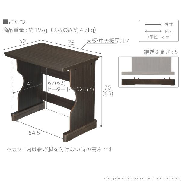 中天板下有効内寸(ヒーター下):幅64.5x奥行41x高さ62/67cm(57/62cm)