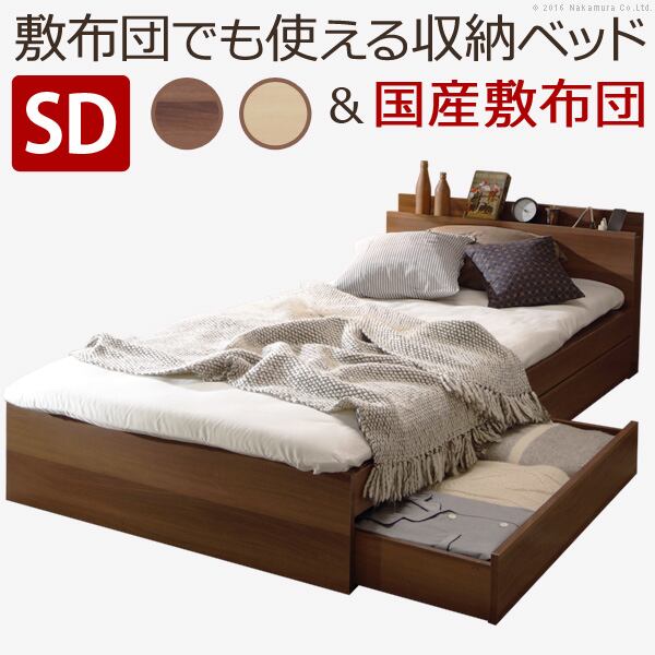 ベッド 布団 セット 敷布団でも使えるベッド-アレン- セミダブルサイズ+国産3層敷布団セット 引き出し 木製 宮付き コンセント 日本製 防ダニ マットレス不要
