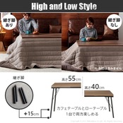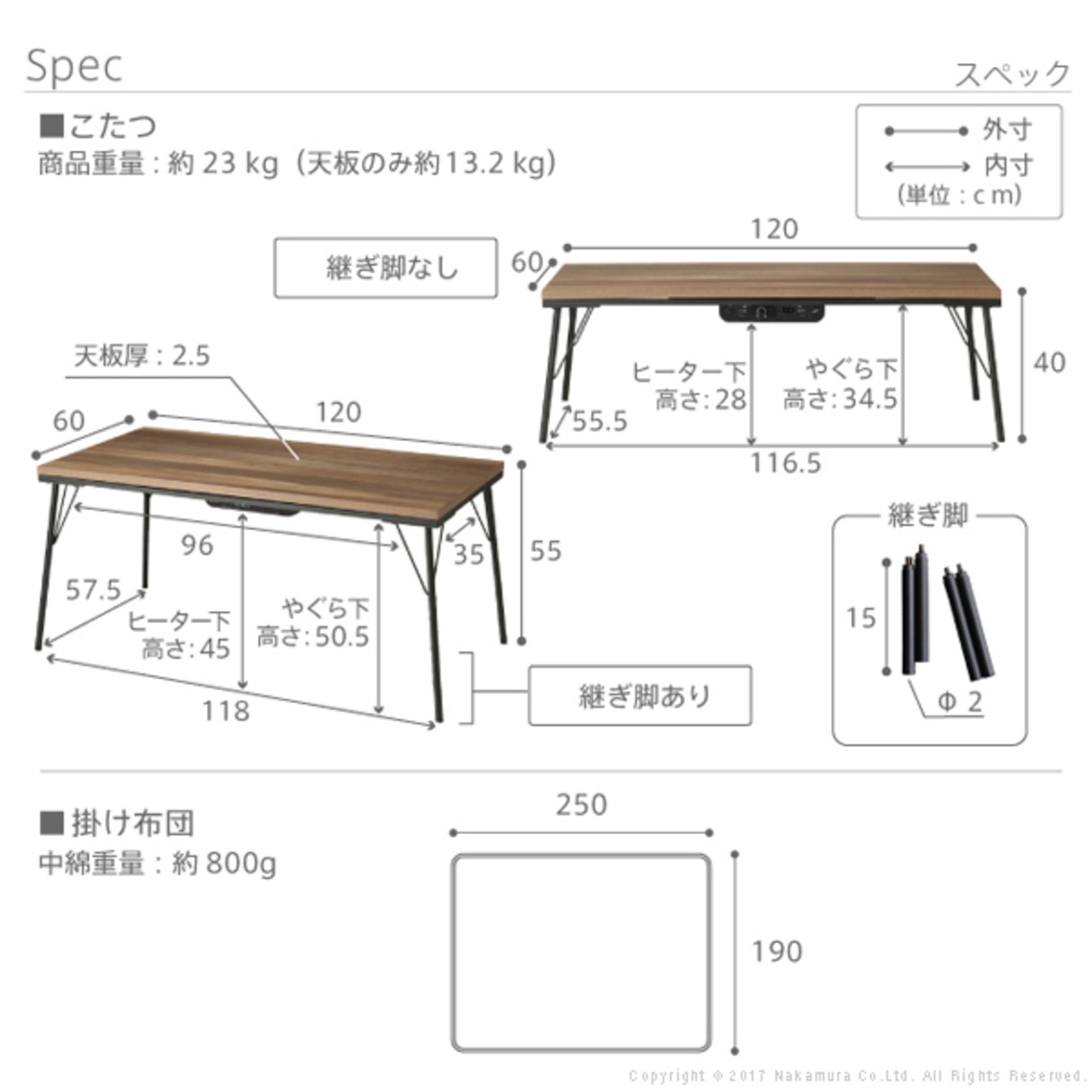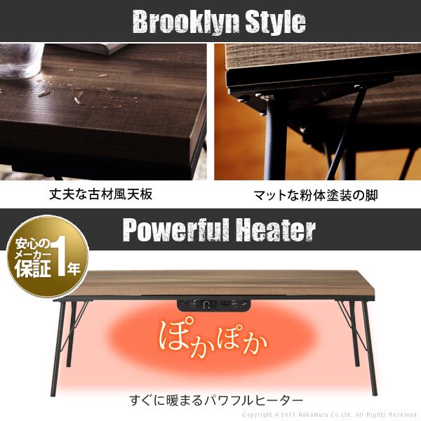 こたつ テーブル おしゃれ 継ぎ脚付き古材風アイアンこたつテーブル-ブルック ハイタイプ120x60cm ヘリンボーン織り掛布団 2点セット ブルックリン テレワーク