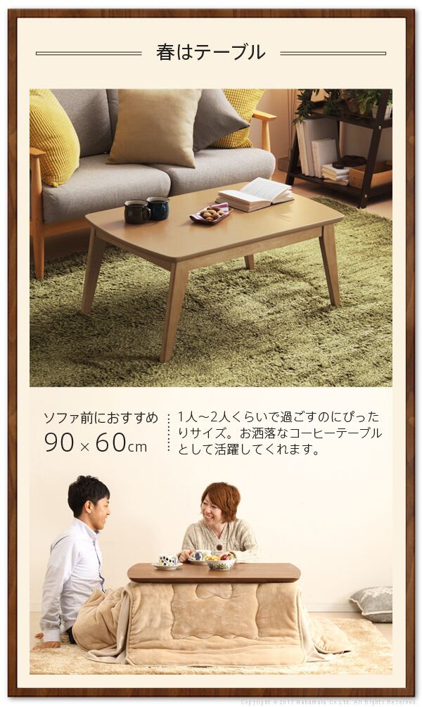 こたつ 長方形 北欧デザインこたつテーブル-イーズ-90x60cm +はっ水リバーシブル省スペースこたつ布団 2点セット あったか シンプル テレワーク リモート 在宅