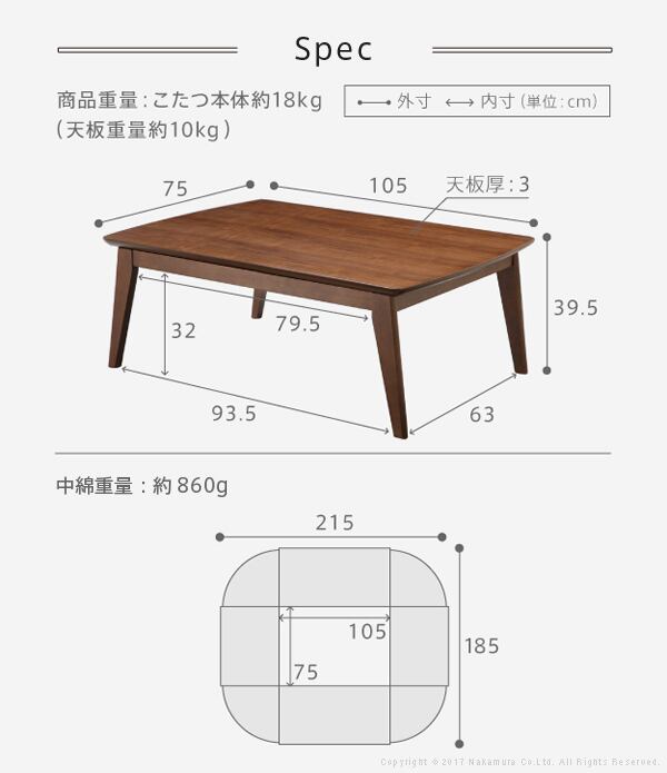 こたつ 長方形 北欧デザインこたつテーブル-イーズ-105x75cm +はっ水リバーシブル省スペースこたつ布団 2点セット あったか シンプル テレワーク リモート 在宅