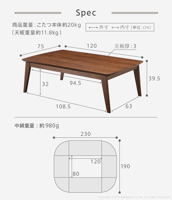 幅120x奥行75x高さ39.5cm