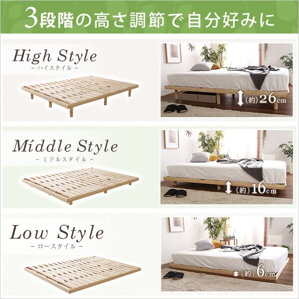 3段階高さ調節 国産総檜脚付きすのこベッド 【Pierna-ピエルナ-】(ポケットコイルロールマットレス付き) ダブル