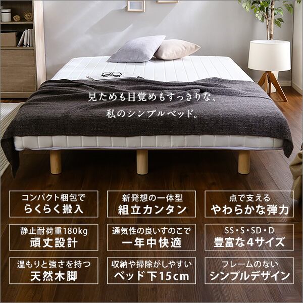 新発想で搬入も組立カンタン!やわらかな寝心地 脚付きロールマットレス(ポケットコイルスプリング)【Unite -Doux- -ユニテ・ドゥ-】ダブルサイズ