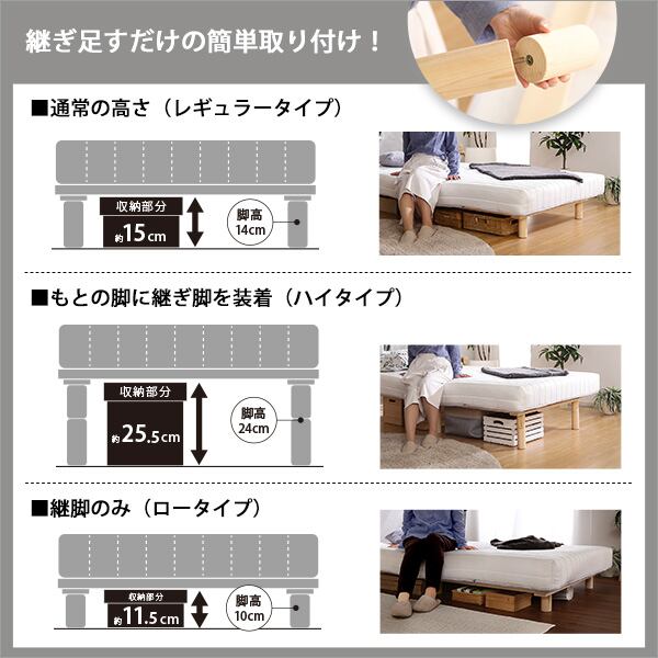 脚付きロールマットレス【Uniteシリーズ】専用継ぎ脚 6本セット(SS/S/SDサイズ専用)