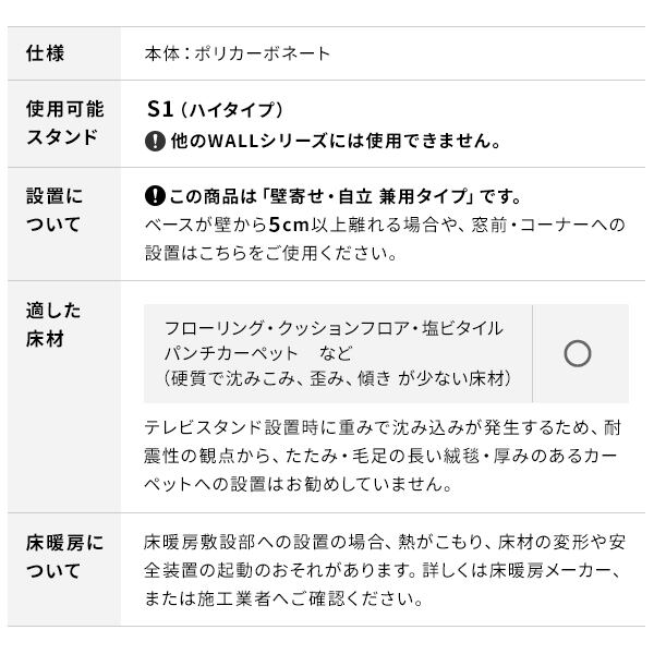 WALLインテリアテレビスタンドS1ハイタイプ専用 ポリカーボネートフロアシート テレビ台 床保護パネル 床 シート キズ防止 WALLオプション EQUALS イコールズ