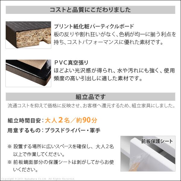 前板:合成樹脂化粧繊維版(鏡面PVC張り)