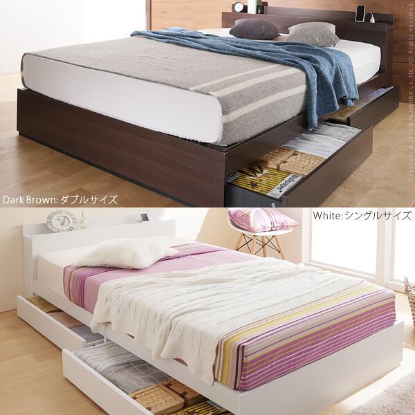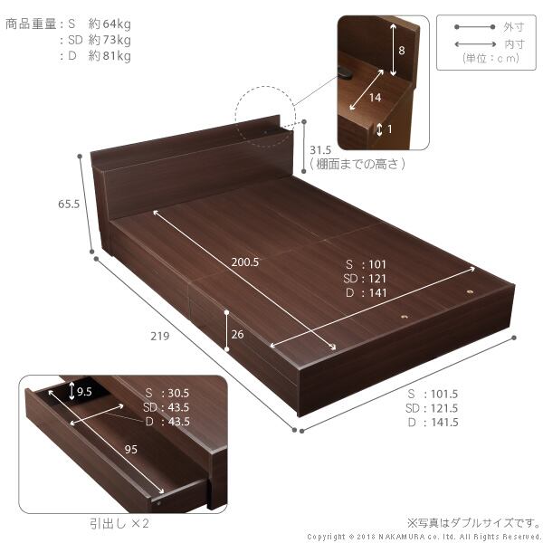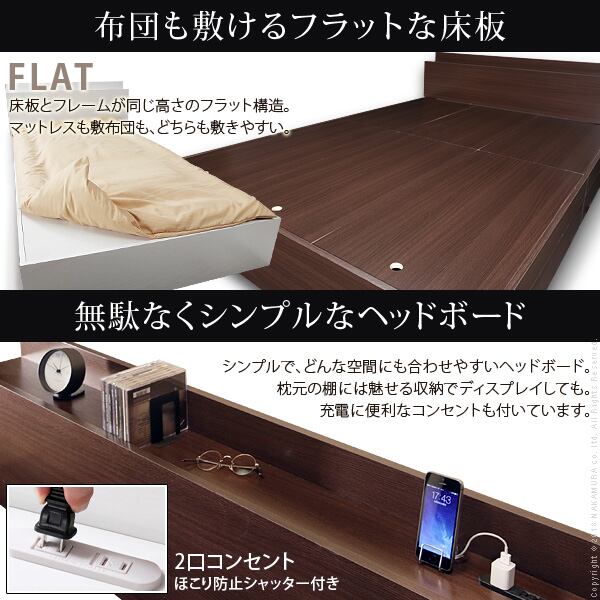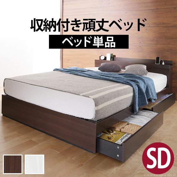 収納付き頑丈ベッド カルバンストレージ セミダブル ベッドフレームのみ コンセント 引き出し 宮付き 木目 木製 シンプル 一人暮らし