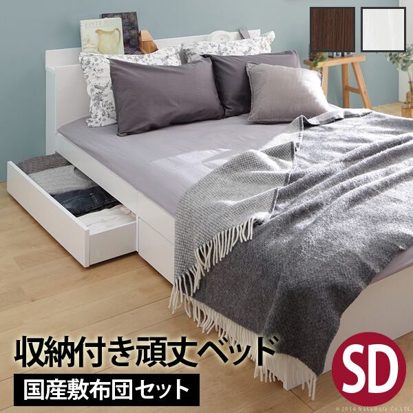 敷布団でも使えるフラットストレージベッド カルバンストレージ セミダブルサイズ+国産3層敷布団セット コンセント 引き出し 宮付き 木製 布団セット シンプル