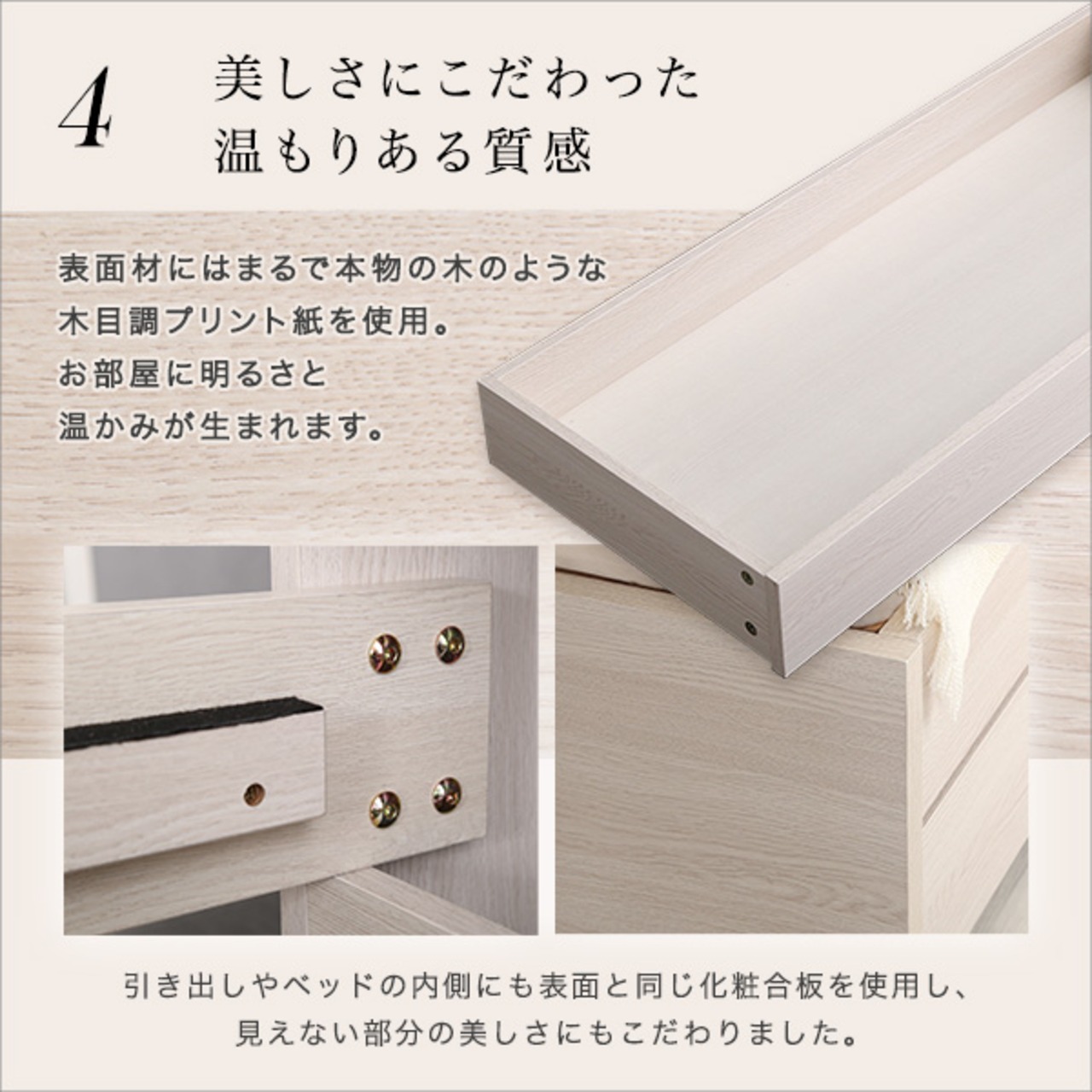 大人かわいいインテリア 棚・コンセント付きチェストベッド シングル【anail-アネール-】
