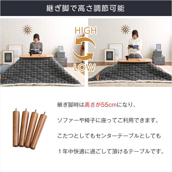 こたつテーブル長方形 おしゃれなアルダー材使用継ぎ足タイプ Colle-コル-