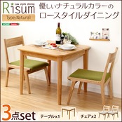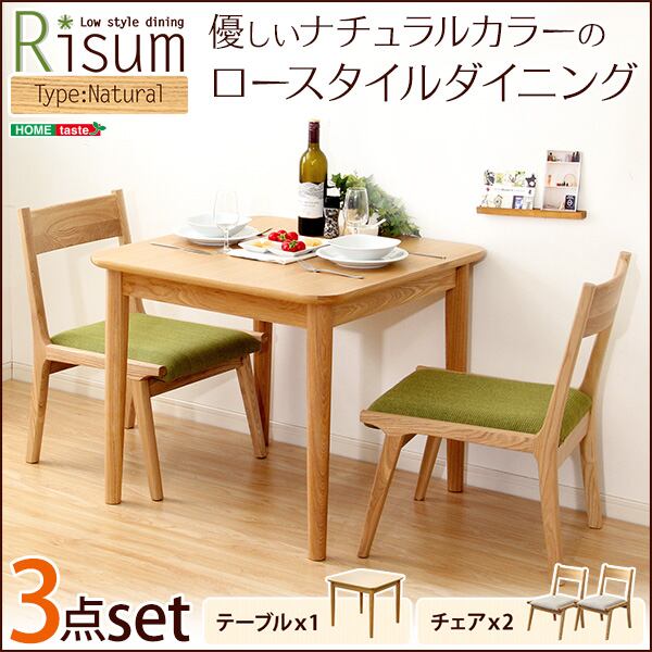 ダイニング3点セット(テーブル+チェア2脚)ナチュラルロータイプ 木製アッシュ材|Risum-リスム-