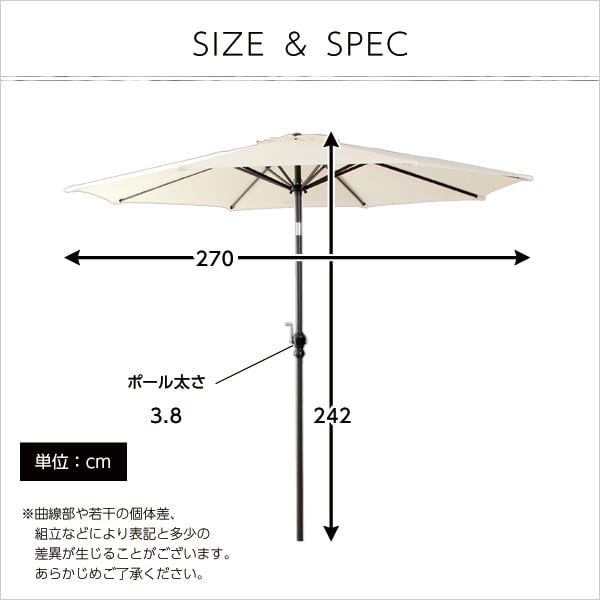 オープンカフェ風パラソル 270cm【セレナード-SERENADO-】パラソル 撥水 アルミ