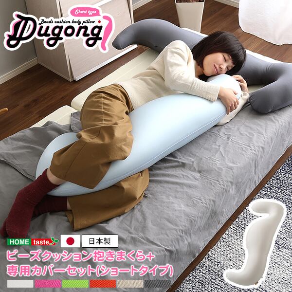 日本製ビーズクッション抱きまくらカバーセット(ショートタイプ)流線形、ウォッシャブルカバー【Dugong-ジュゴン-】