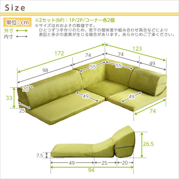 コーナー:(約)幅74x奥行き74x高さ33cm(座面高:7.5cm)