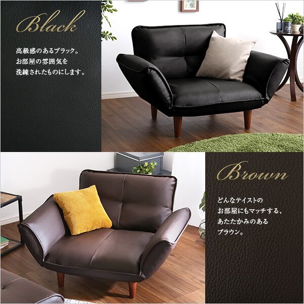 1人掛ソファ(PVCレザー)5段階リクライニング、フロアソファ、カウチソファに 日本製|Rugano-ルガーノ-