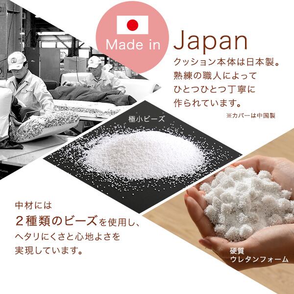 中材:発泡ポリスチレンビーズ、ウレタンフォーム