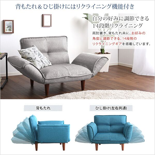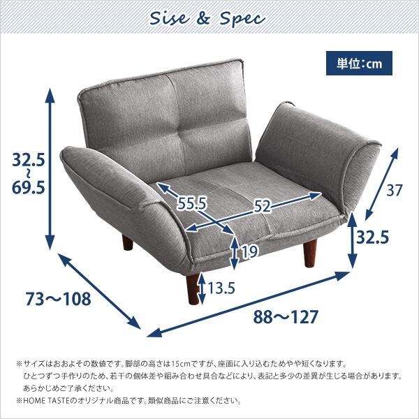 1人掛ソファ(布地)5段階リクライニング、フロアソファ、カウチソファに 日本製|Thun-トゥーン-