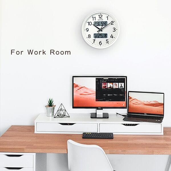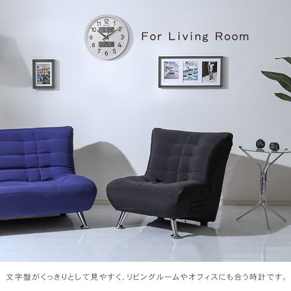 掛け時計 電波時計 温度湿度計・カレンダー表示 ホワイト
