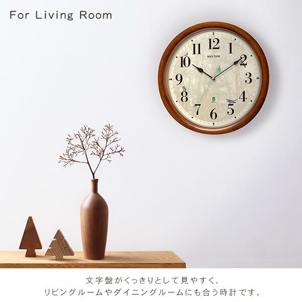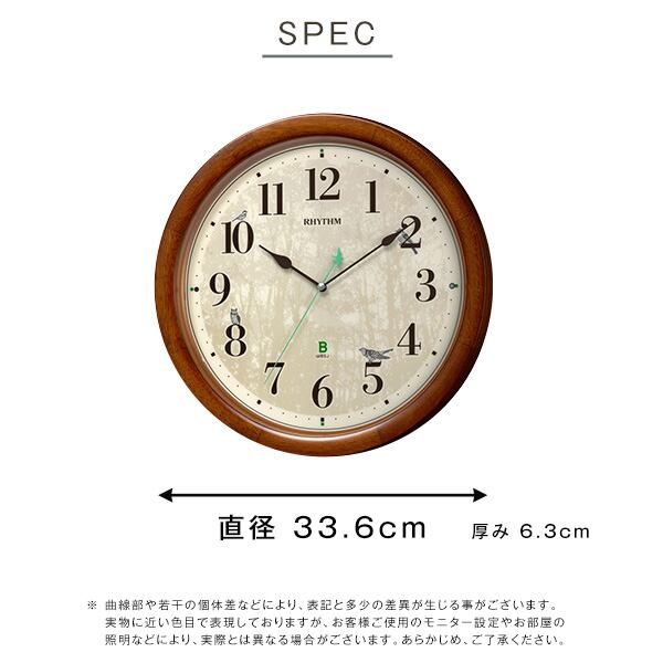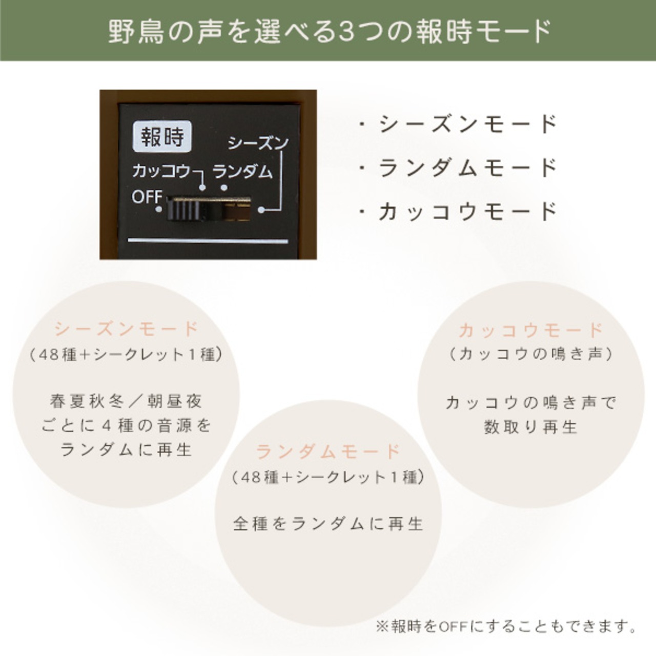 掛け時計 時報クロック 野鳥の声 49種類 高質サウンド ブラウン