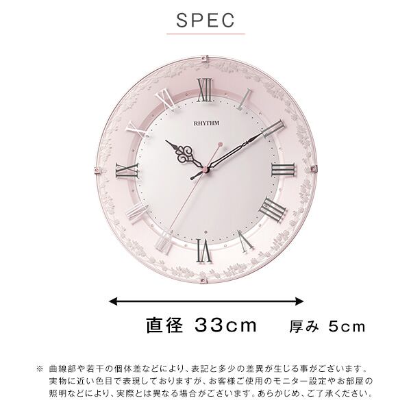 リズム掛け時計 クリスタル付留め飾り 電波時計 バラ模様