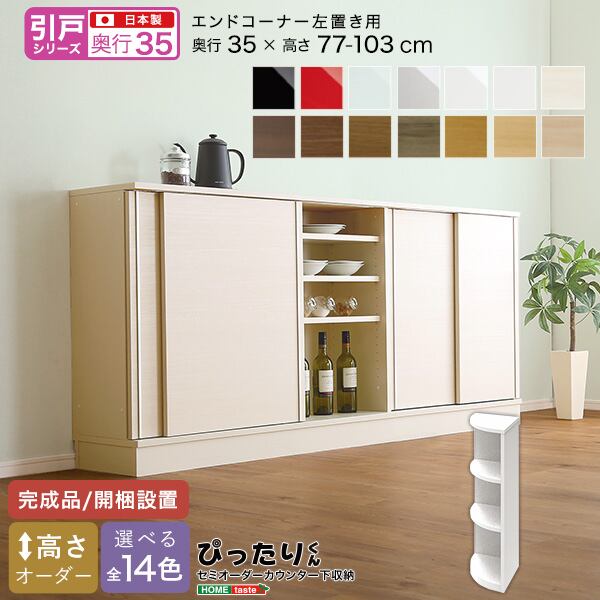 【引戸シリーズ】セミオーダーカウンター下収納ぴったりくん エンドコーナー左置き 奥行35cm