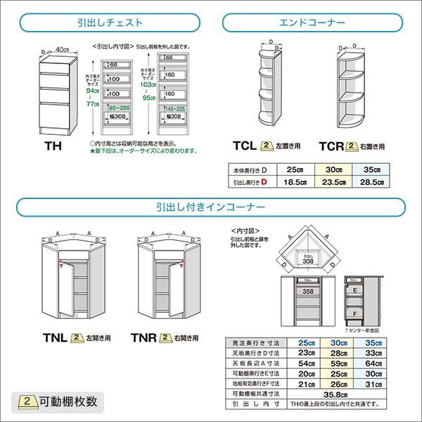 【扉シリーズ】セミオーダーカウンター下収納ぴったりくん 引出しチェスト 奥行30cm