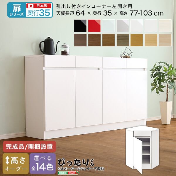【扉シリーズ】セミオーダーカウンター下収納ぴったりくん 引出し付きインコーナー左開き 奥行35cm