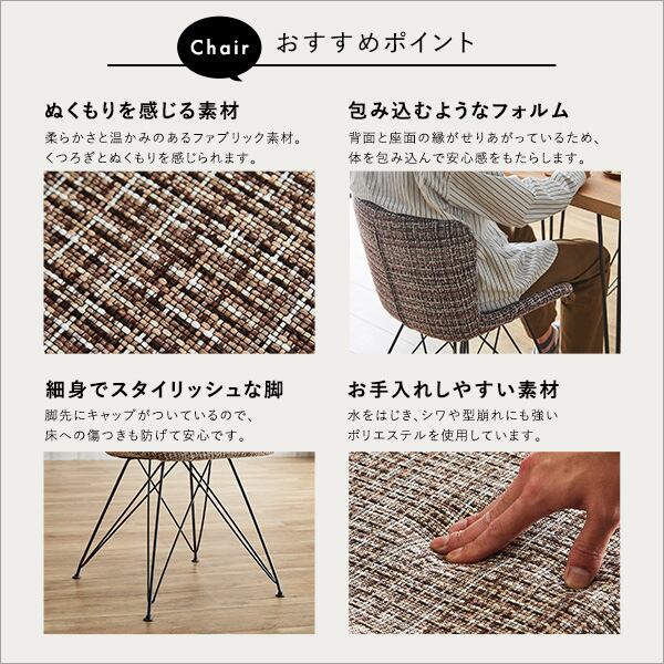 【素材】チェア:(張地):ポリエステル100%、(脚部)スチール