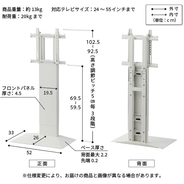 対応テレビサイズ:55インチ(20kg相当)まで