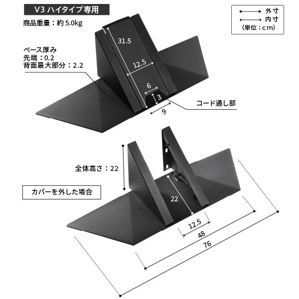 WALLインテリアテレビスタンドV3ハイタイプ専用 コーナー兼用自立ベース 幅76cm テレビスタンド 自立 コーナー パーツ WALLオプション EQUALS イコールズ
