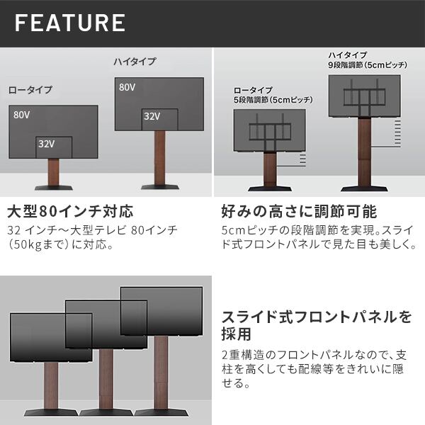 テレビ台 WALLインテリアテレビスタンドV3 ハイタイプ 32〜80v対応 壁寄せテレビ台 ホワイト ブラック ウォールナット 木目 ナチュラル EQUALS イコールズ