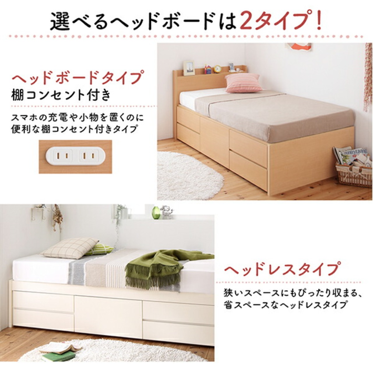 組立設置付 日本製 大容量コンパクトすのこチェスト収納ベッド ベッドフレームのみ ヘッド付き シングル