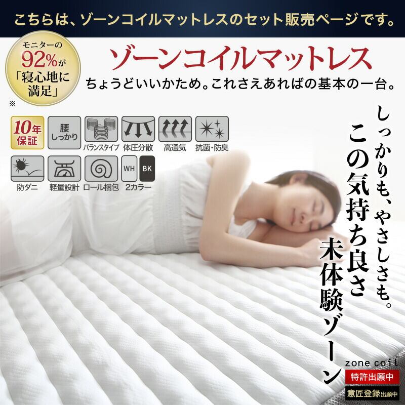 組立設置付/無垢すのこデザインベッド ゾーンコイルマットレス付 セミダブル