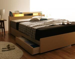 照明・棚付き収納ベッド ポケットコイルマットレス付き セミダブル