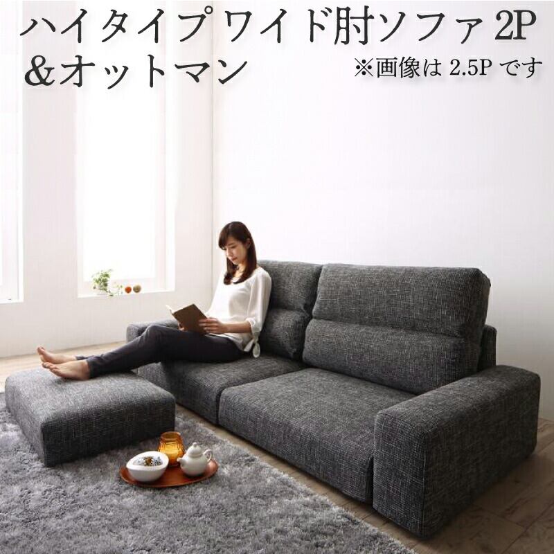 フロアソファ ソファ&オットマンセット ワイド肘 ハイタイプ 2P